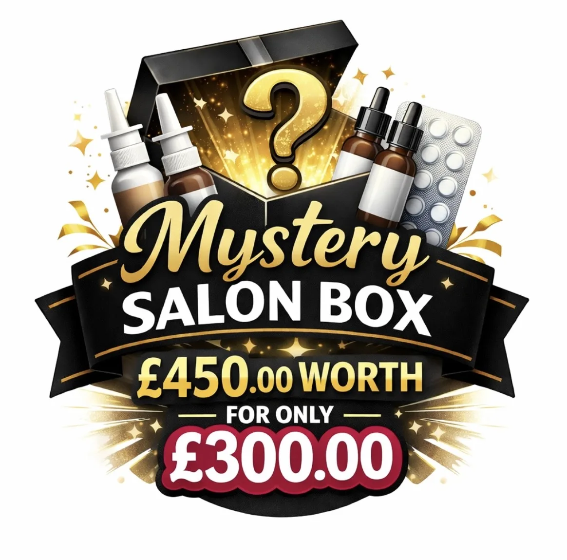 you will receive a mystery parcel with £450.00 worth products for just £300.00