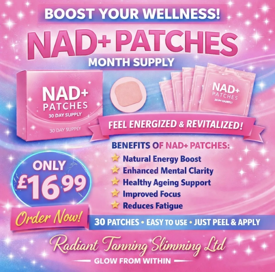 Add NAD+ patches to your self-care routine and glow from the inside out ✨